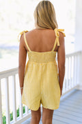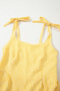 Sale Yellow Stripe Shoulder Tie Smocked Back Wide Leg Casual Romper