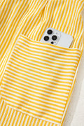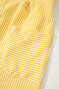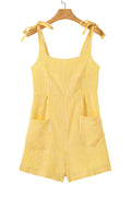 - This summer romper is eye-popping in a bright yellow tone.The white striped pattern makes it more classic and fashionable.Flexible tied shoulder, square neck, smocked back and wide leg.The front side pockets are functional and decorative.