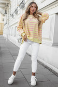 Yellow Stripe Stylish Overlap Detail Drop Shoulder Pullover Sweatshirt